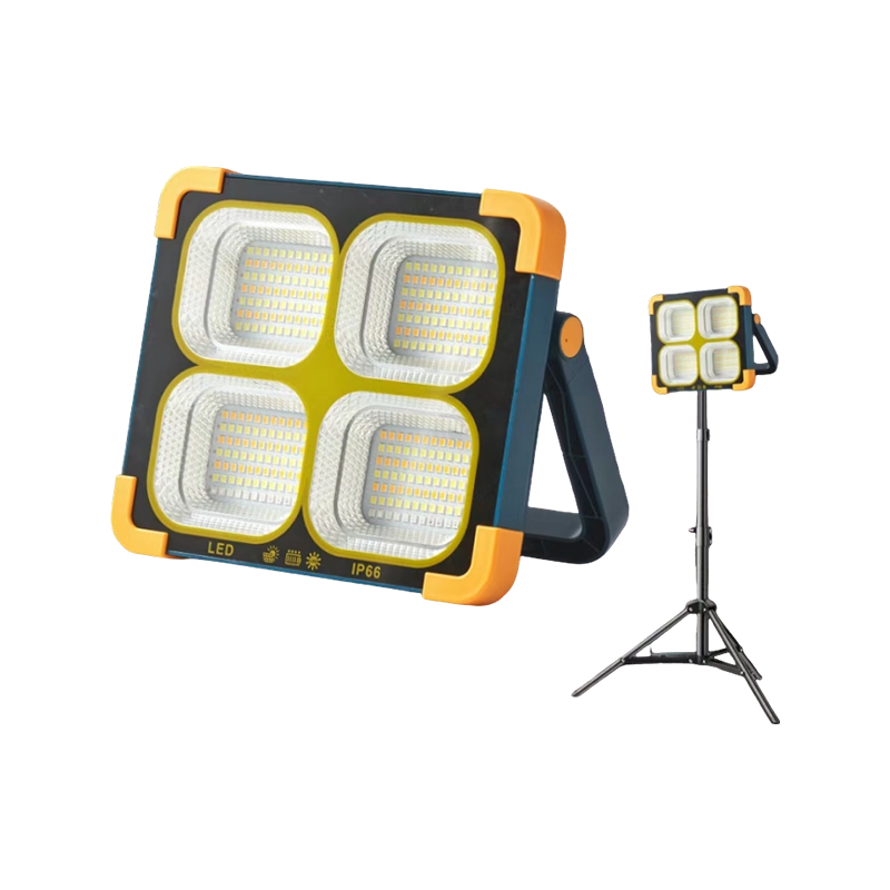 This portable work light has a 12,000-lumen output and features a built-in 8,000-mAh lithium-ion battery with integrated solar charging. Designed for portability, it can provide illumination in off-grid environments and is commonly used for construction sites, maintenance lighting, and more.