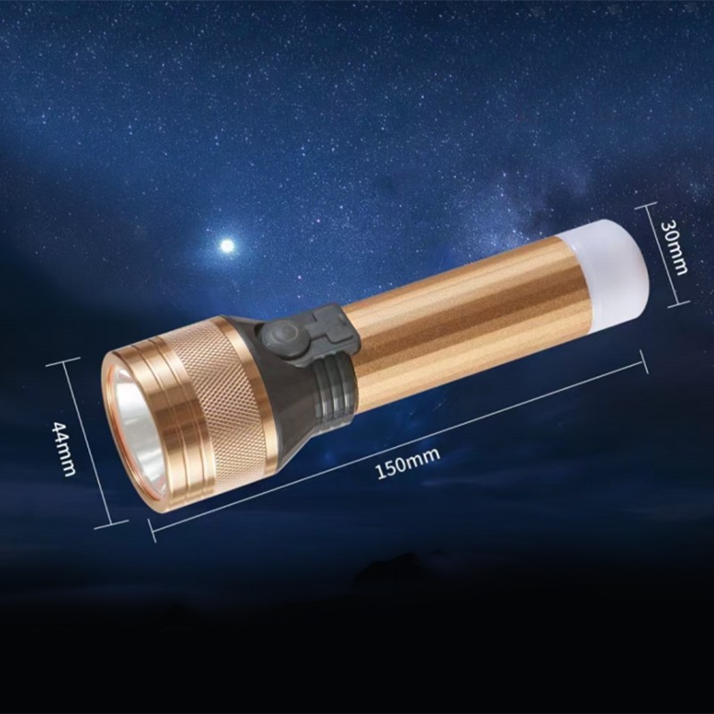 This product is an all-aluminum lithium-ion flashlight with a total length of 150mm and a built-in 1200mAh rechargeable lithium-ion battery. The housing is made of a one-piece aluminum alloy with an anodized surface for corrosion and wear resistance. The lamp head is equipped with a high-efficiency LED light source with multiple brightness settings, allowing users to adjust the light intensity according to the usage scenario. The rear end is designed with a Type-C charging port for fast charging. The overall structure is IPX5 waterproof and can be used in a variety of environments. The flashlight is lightweight and easy to hold and carry, suitable for outdoor activities, daily lighting, and emergency scenarios.