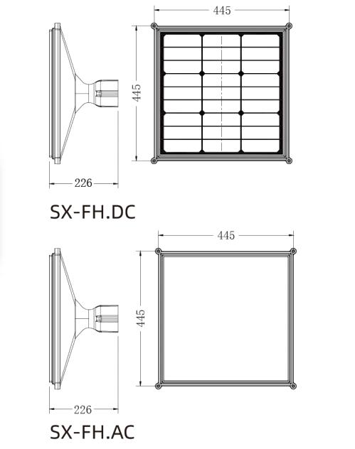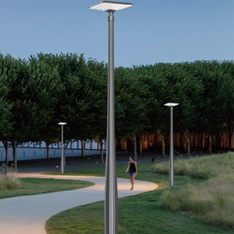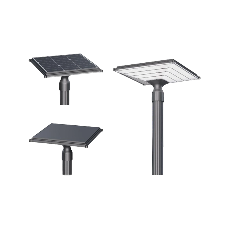 This series of square-shaped solar garden lights is available in 15W, 30W, and 60W power options. Powered by solar energy, they typically utilize a lithium iron phosphate battery and support automatic light and time control. The light body is constructed of die-cast aluminum with an anti-corrosion finish. The light source utilizes LED modules, typically achieving a luminous efficacy of at least 100 lm/W. Suitable for lighting residential gardens, park trails, and non-motorized vehicle lanes.