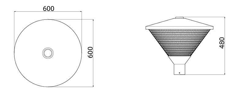 This product is a large-scale garden light, measuring 600×600×480mm and offering a power of 30W-60W. Its thickened die-cast aluminum structure provides a large heat dissipation area, enabling long-term continuous operation. It is suitable for locations requiring strong lighting and high durability, such as plaza centers and entrance signage areas.
