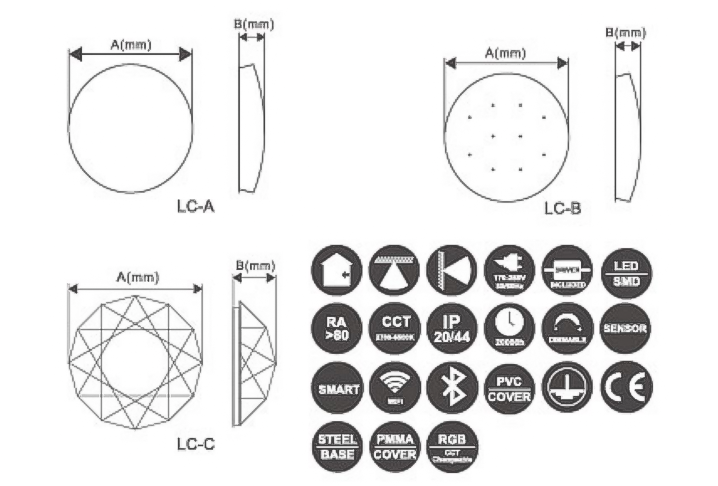 This series of ceiling lamps offers three common wattages: 12W, 18W, and 24W, suitable for basic lighting in small to medium-sized spaces such as bedrooms, study rooms, and hallways. These lamps feature a simple design, typically round or square, with a plastic body and an acrylic or PC diffuser, creating a soft, gentle light. Luminous flux ranges from approximately 1200lm to 2400lm, with a color temperature typically ranging from 3000K warm light to 4000K neutral light, and a color rendering index (Ra) ≥ 80. They mount directly to the ceiling surface, with simple wiring, making them suitable for homes and apartments.