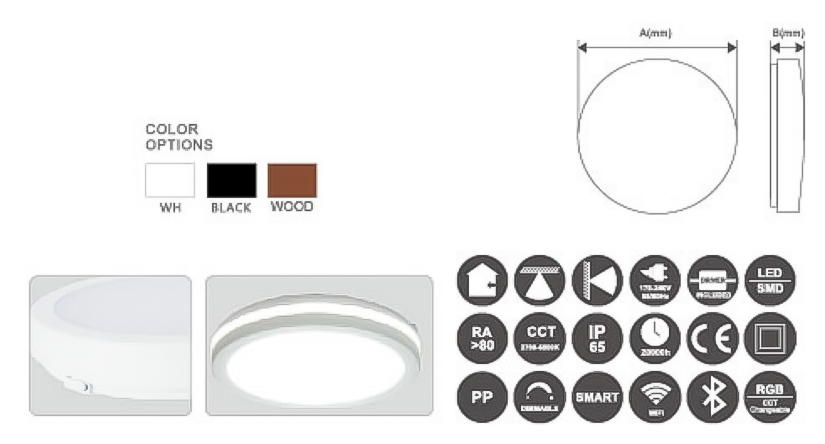 This series of ceiling lamps offers 15W, 24W, and 36W models, meeting the lighting needs of a variety of scenarios, from small bathrooms to medium-sized bedrooms. The lamps feature a simple plastic body and a milky white PC diffuser. Luminous flux ranges from 1500lm to over 3500lm, with color temperatures available in warm yellow (3000K) and neutral white (6000K), and a color rendering index exceeding 80. They feature a direct ceiling mount design, making installation simple and suitable for mass installation in apartments, hotels, and residential projects.