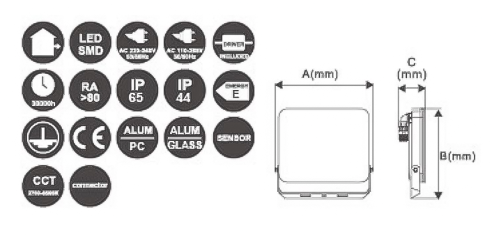 Home / Products / Solar Lighting / LED Outdoor Lights / 10W-100W 800lm-8000lm LED Floodlight