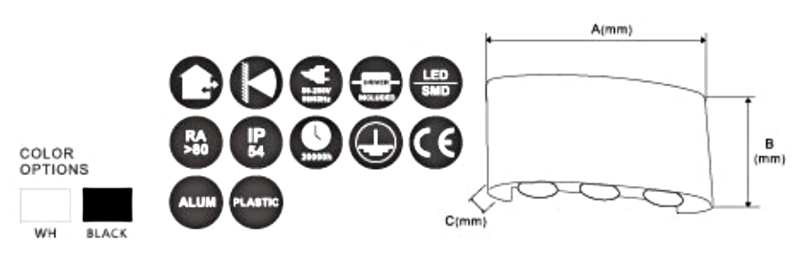 Home / Products / Solar Lighting / LED Outdoor Lights / 2W-12W 2700-6500K Black LED Wall Light