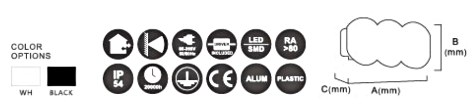 Home / Products / Solar Lighting / LED Outdoor Lights / 2W-12W 2700-6500K Black Oval LED Wall Light