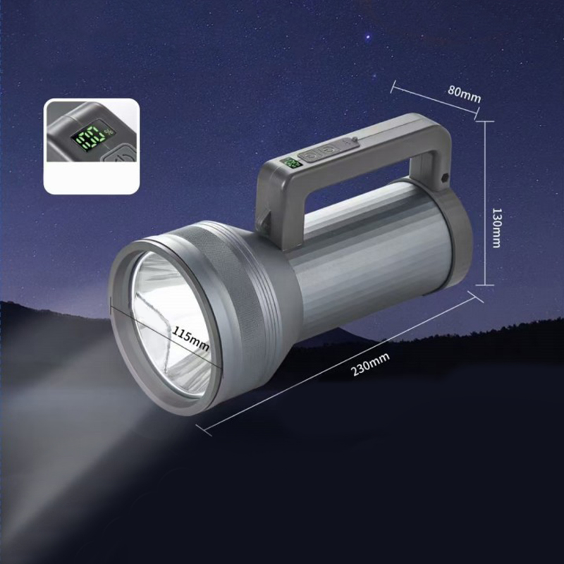 This 230mm caliber all-aluminum laser cannon searchlight features a high-purity aluminum alloy housing for high structural strength and excellent heat dissipation. It houses a built-in 8800 mAh lithium battery, providing long-lasting illumination and multiple battery life adjustments. The optical system features high-efficiency LED modules and a deep-coated lens for concentrated light output and long-range projection. It supports multiple lighting modes and brightness adjustments to suit diverse application scenarios. The housing is treated with anti-oxidation and corrosion-resistant treatments, meeting IP65 standards for protection, making it suitable for outdoor and complex environments. The overall design emphasizes practicality and durability, making it suitable for professional lighting needs.