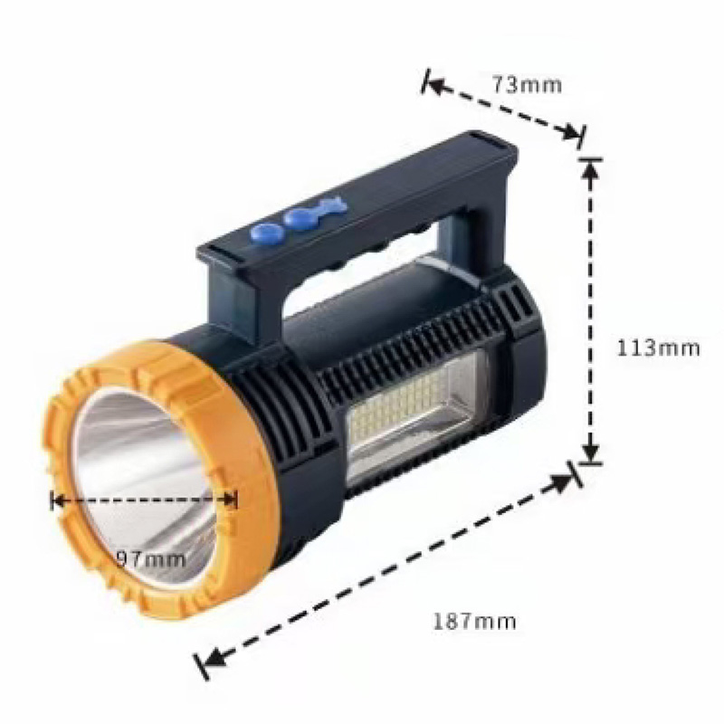 This product is a lithium-ion searchlight with a laser cannon and sidelights. It's 187mm long and features a built-in 4000mAh lithium battery, making it suitable for a variety of outdoor and professional scenarios. The main light utilizes a high-brightness LED with adjustable high and low beams, providing extended illumination. Sidelights provide auxiliary illumination, extending the illumination range. It features a laser positioning function that precisely indicates the direction of illumination. The housing is constructed of engineering-grade materials, offering a compact design and excellent protection. It supports a Type-C charging port for efficient charging. It's ideal for nighttime operations, search and rescue, camping, and vehicle maintenance.