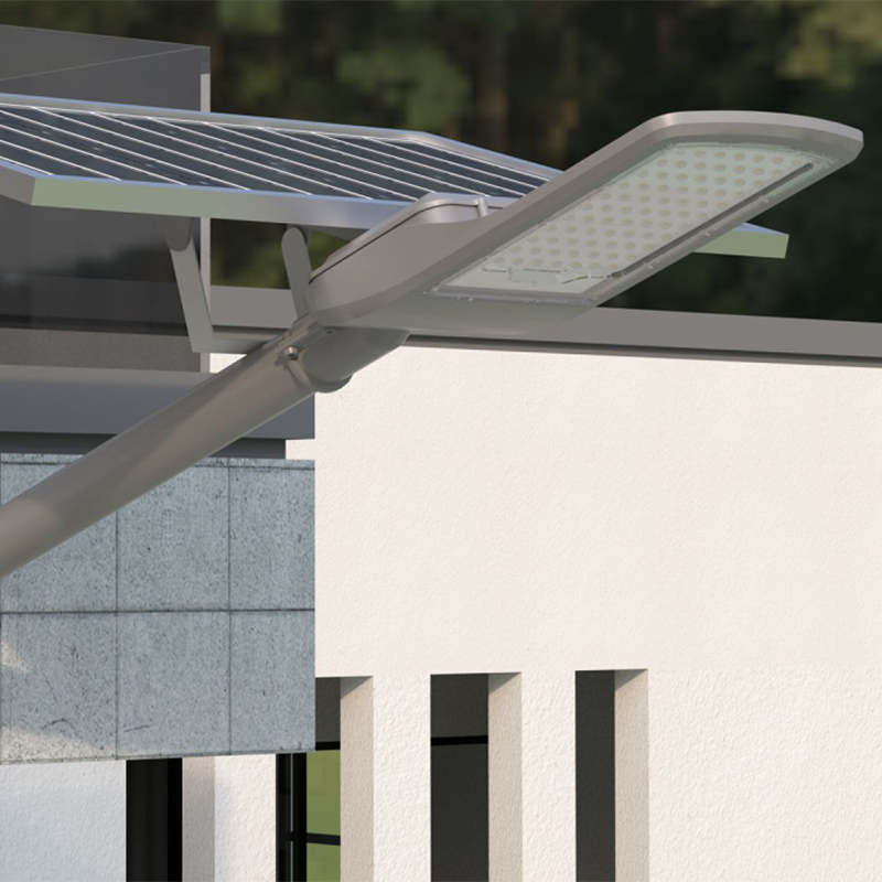 This series of solar street lights operates at 3.2V and is available in 25W, 35W, and 50W power options. It also features an integrated remote control and IP65 protection for protection against rain and dust. The system includes a solar charging module, a lithium iron phosphate or lithium-ion battery, and an LED light source, making it suitable for lighting applications such as residential roads and landscape gardens. The remote control can be used to turn the lights on and off, adjust the brightness, and set the operating time.
